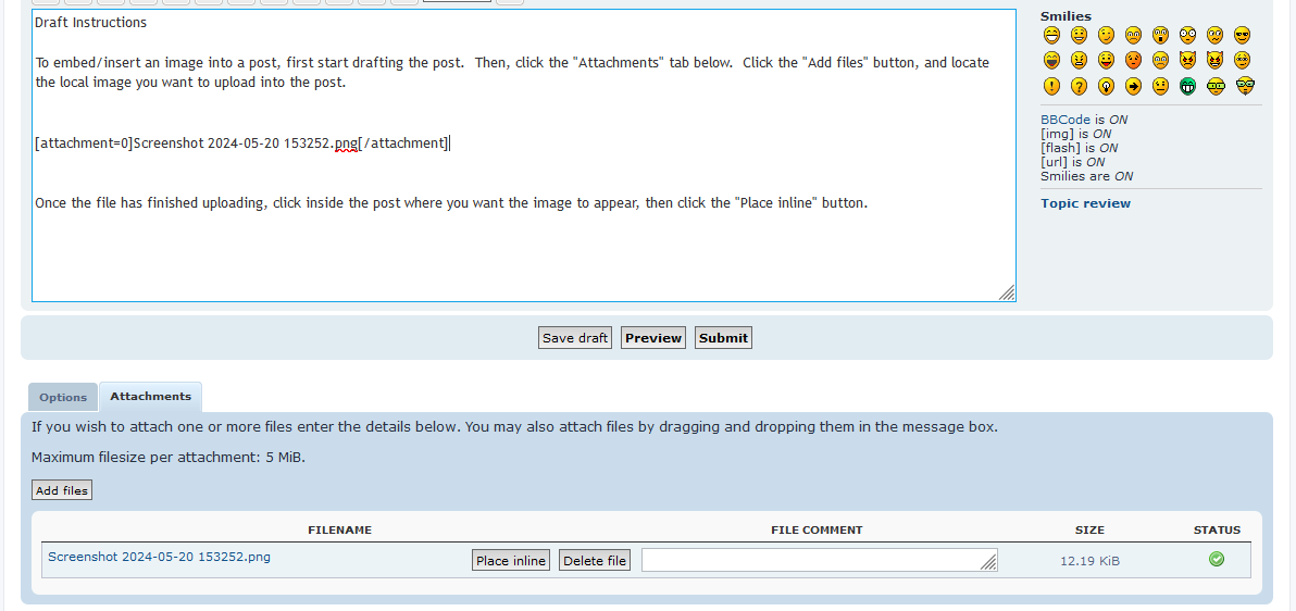 - Once the file has finished uploading, click inside the post where you want the image to appear